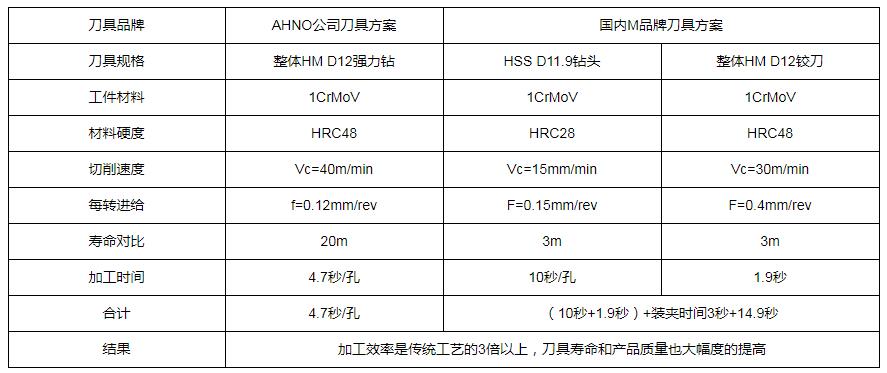 阿诺公司开发的强力钻头,可以实现≥HRC42 的材料加工,尤其是在淬火后的钻削加工,实现了粗精一次钻加工(成),提高了加工效率,保证了产品质量,具有较高的性价比。