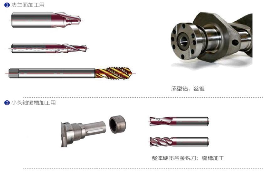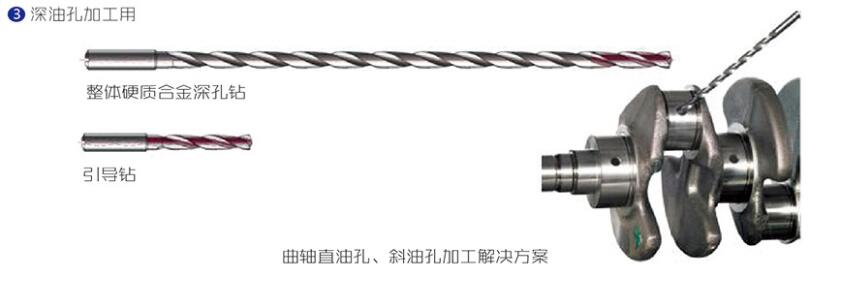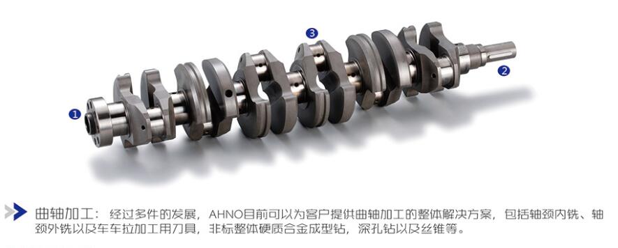 曲轴和连杆一样,是发动机中重要的运动部件,曲轴的材料主要有合金钢和球墨铸铁两大类。曲轴钻孔加工中,最难加工的是润滑油孔的钻削。阿诺设计的高效深孔钻,特殊的槽型设计,使加工过程中排屑顺畅,刀具强度高,细致的刃口处理和耐高温的涂层延长了刀具使用寿命。